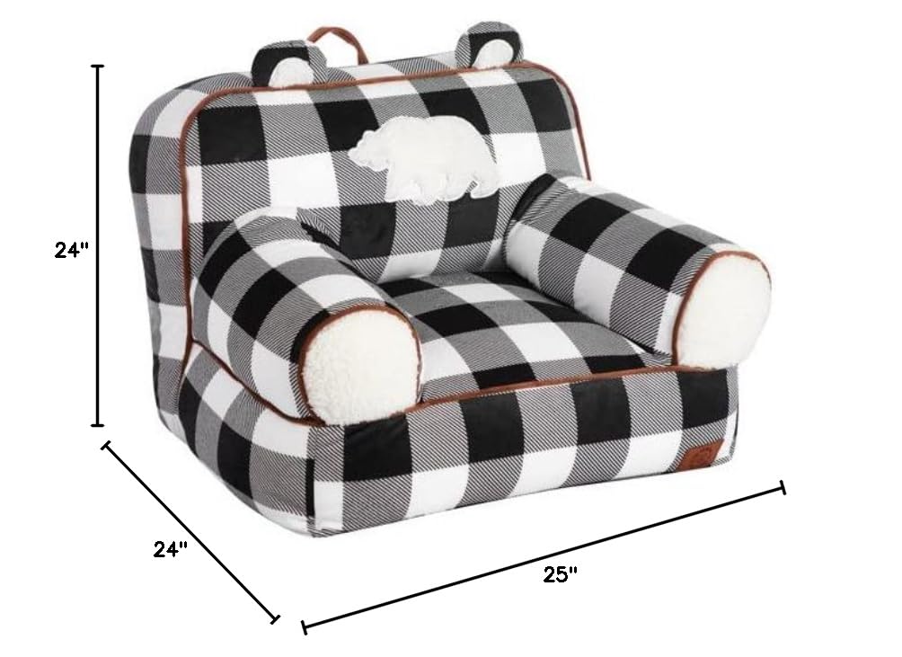 Dearfoams Black and White Buffalo Check Sherpa Plush Bean Bag Chair with Novelty Ears Large—