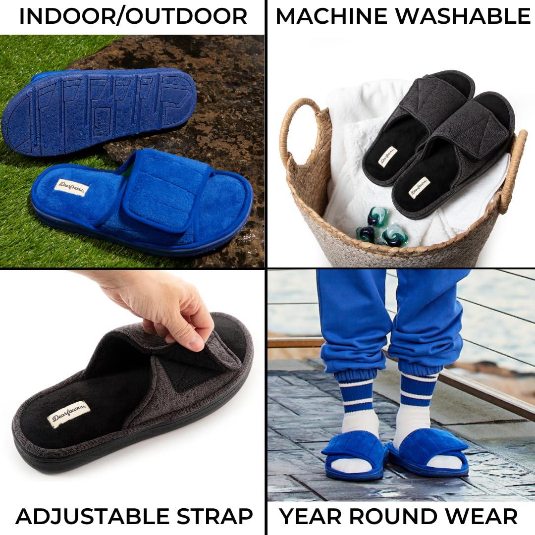 Dearfoams Men's Adjustable Indoor/Outdoor Memory Foam Machine Washable Summer Slide Slipper