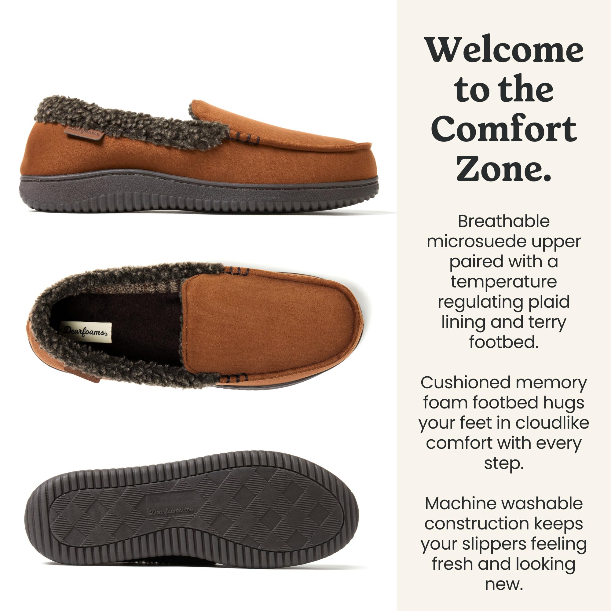 Dearfoams Men'sAlexander Microsuede Moccasin with Berber Casing, CHESTNUT, L