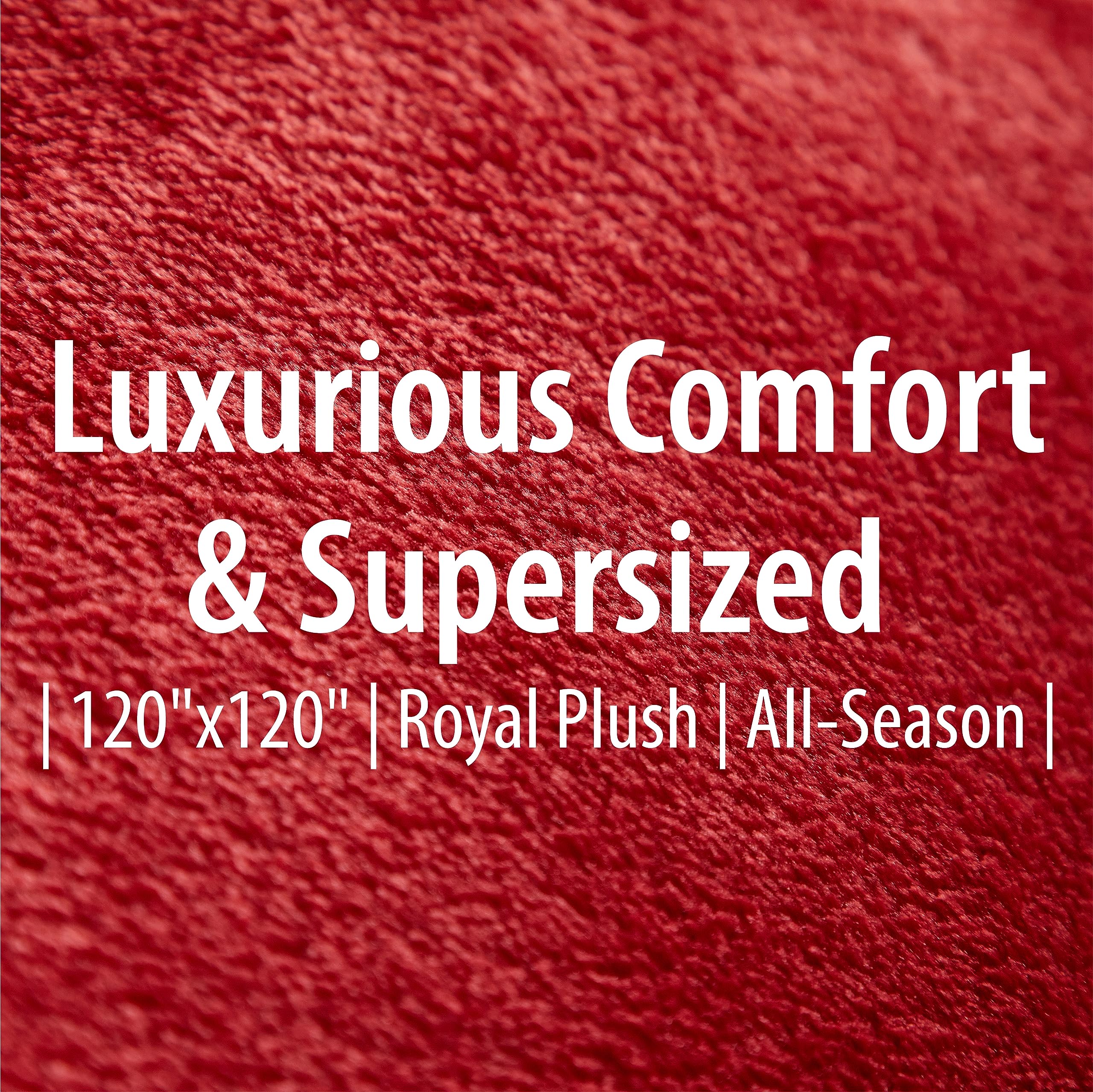 Dearfoams Oversized Super Soft Royal Plush Velvet Family Blanket for All Seasons- 10' x 10' (120"x120") - XL Blanket - Burgundy