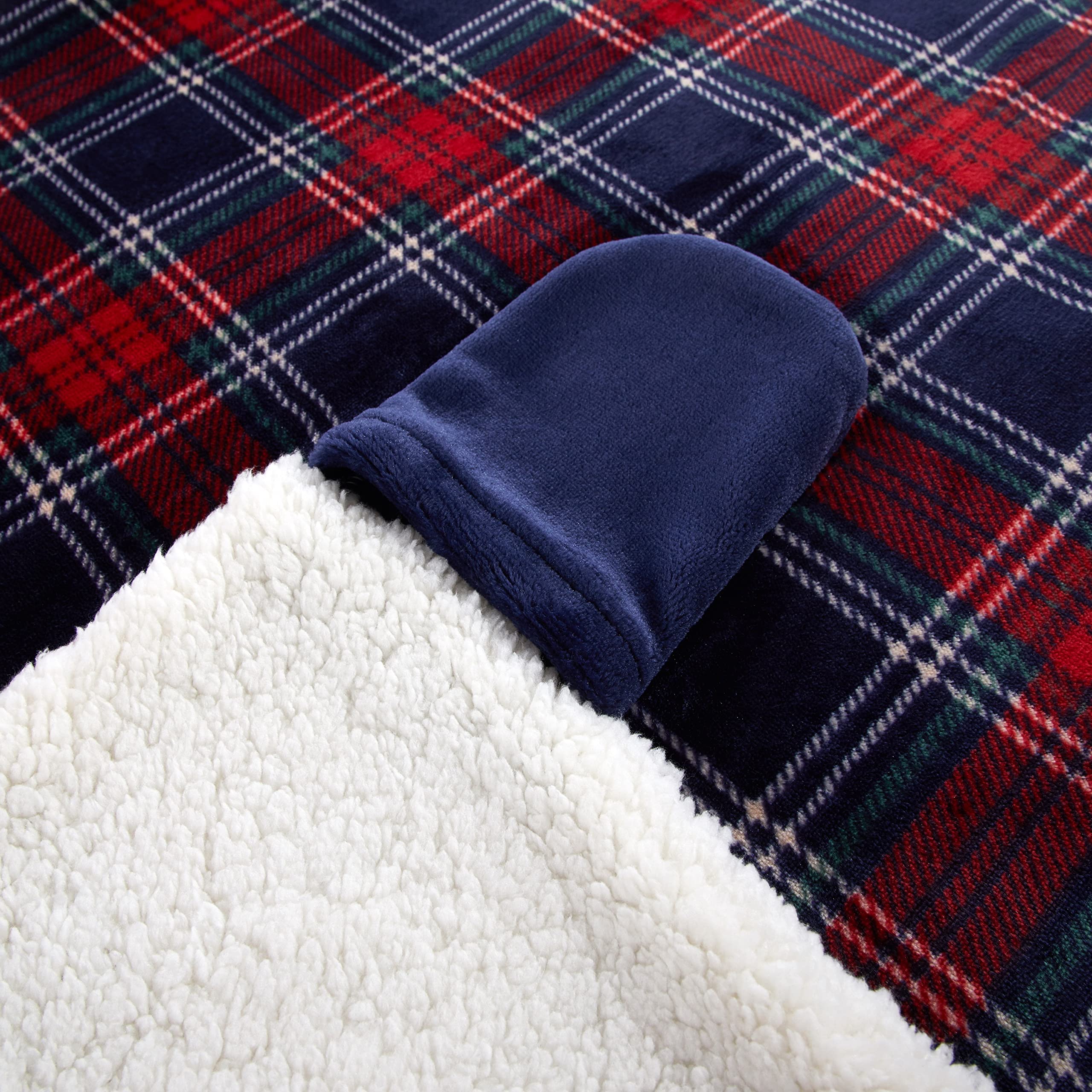 Dearfoams Red Tartan Plaid Printed Royal Plush with Sherpa Reverse Adult Hooded Throw, 50"x60"
