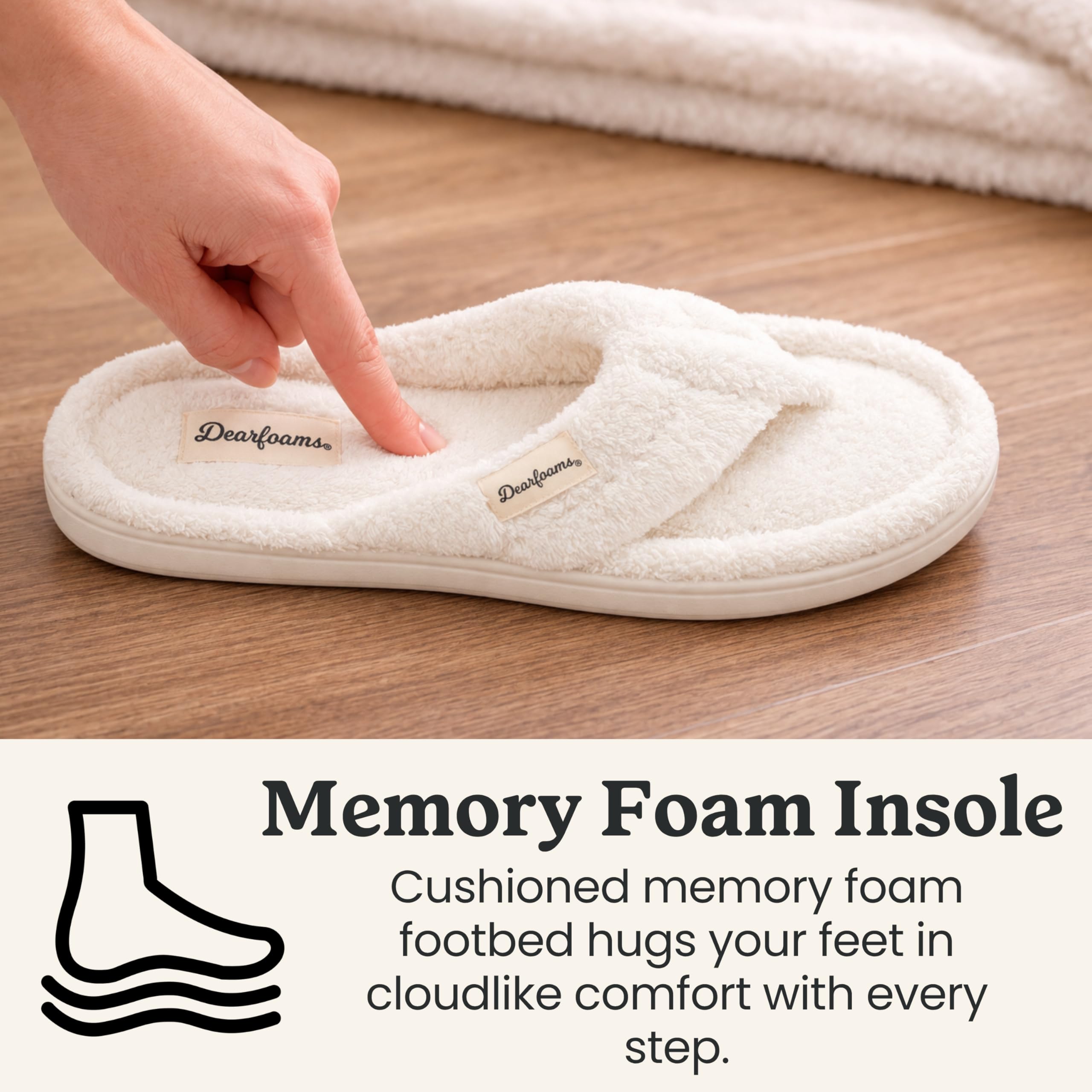 - MEMORY FOAM INSOLE: Each slipper is fitted with a multi-density cushioned insole with gel-infused memory foam for a cloud-like feeling on your feet. Plus, increased heel and arch cushioning adds extra comfort for the ultimate in lounging style.