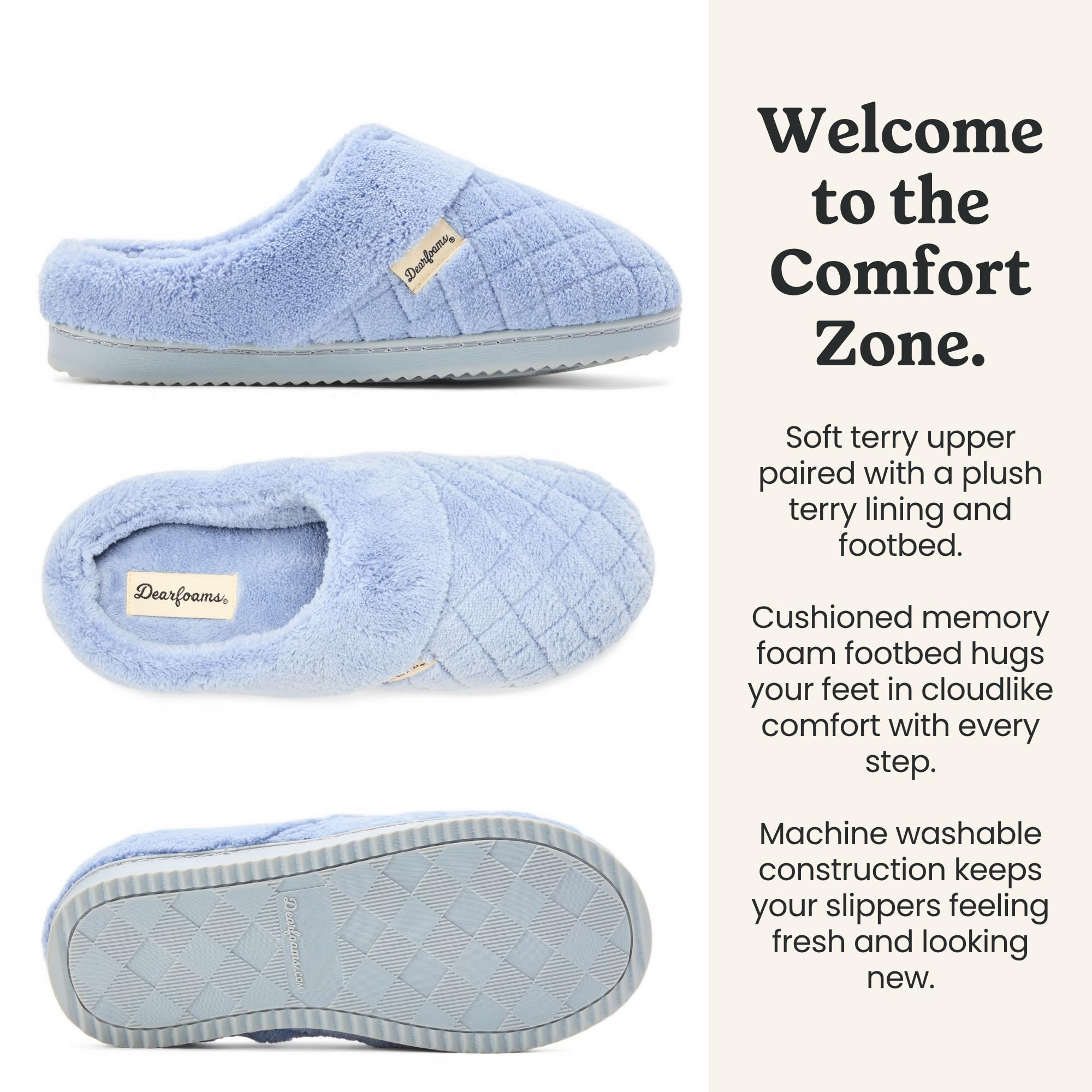 Dearfoams Women's Memory Foam House Slippers - Libby Terry Clog With Wide Widths