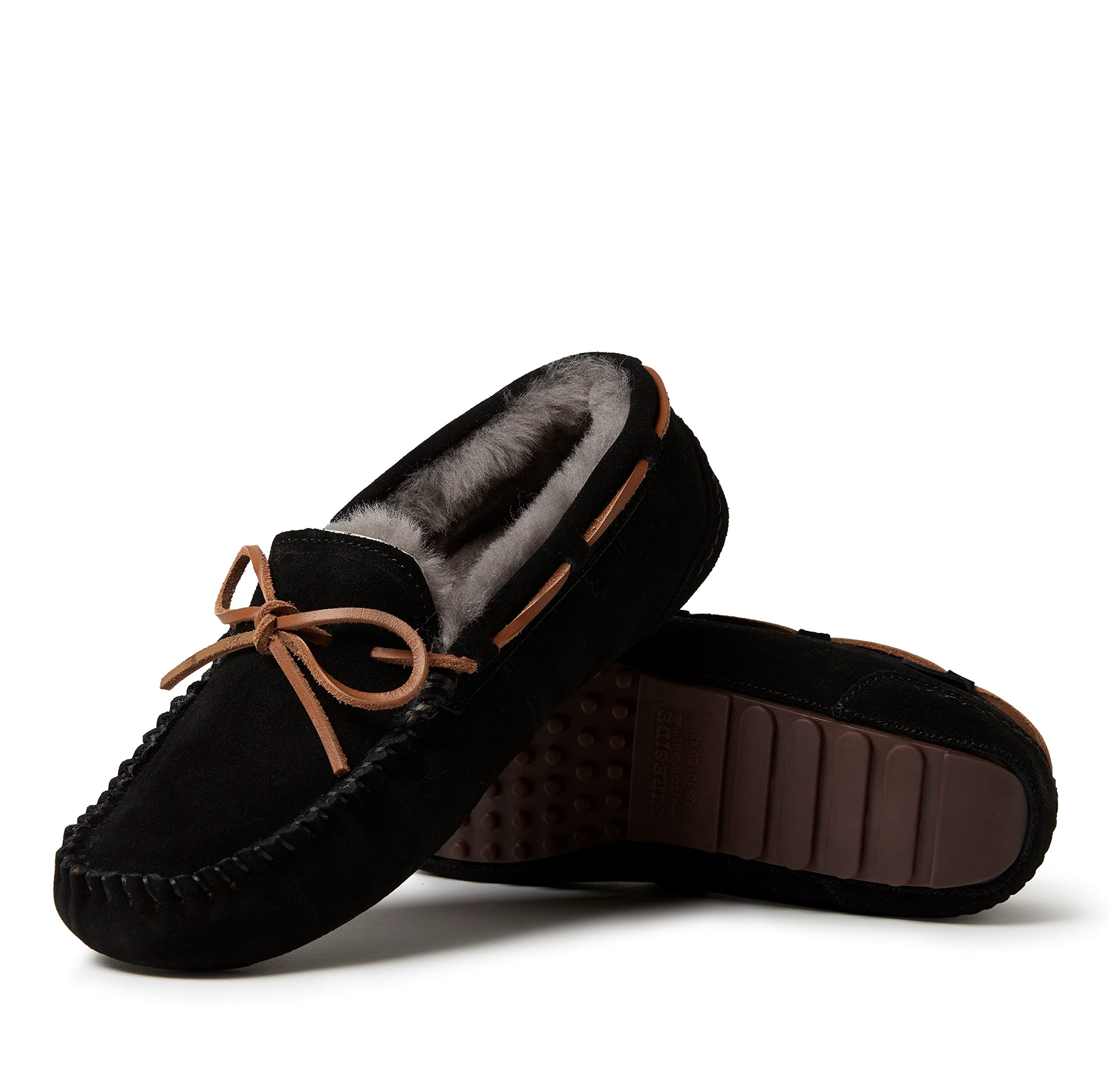 Fireside by Dearfoams Men's Victor Genuine Shearling Water Resistant Indoor/Outdoor Moccasin with Tie Slipper, Wide Widths